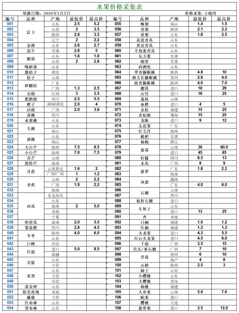 宿州百大2026-02-02价格行情