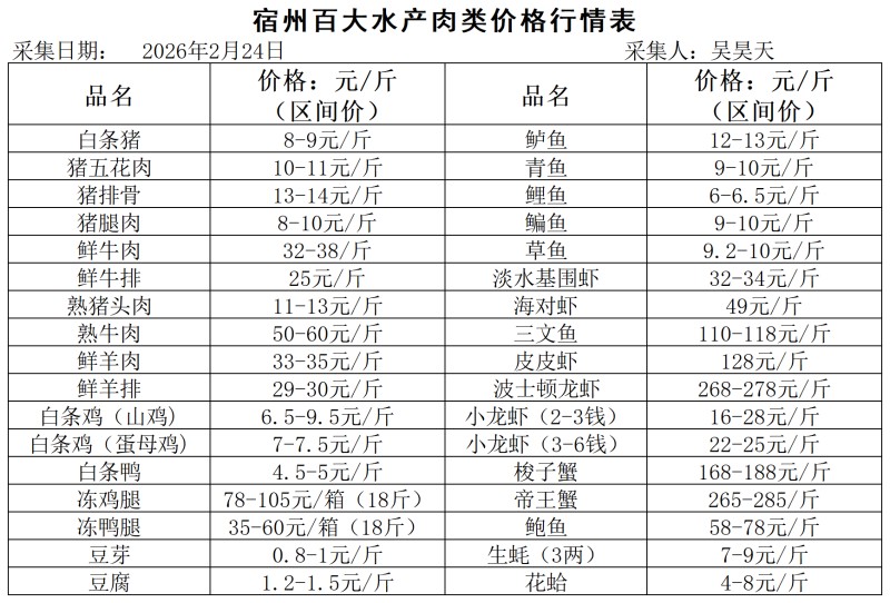 宿州百大2026-02-24价格行情