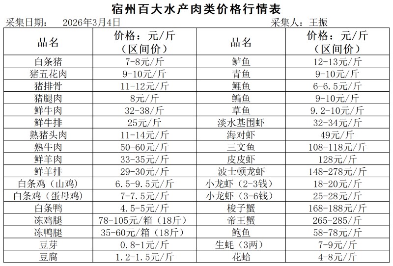 宿州百大2026-03-04价格行情