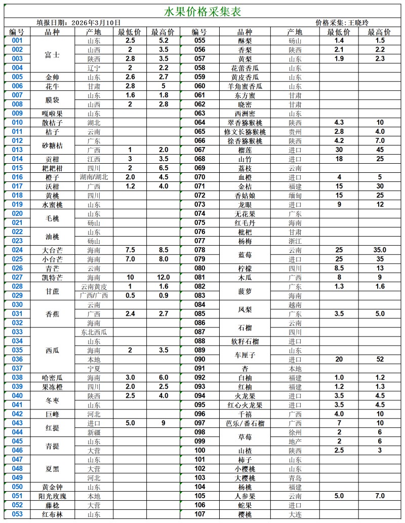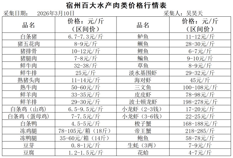宿州百大2026-03-10价格行情