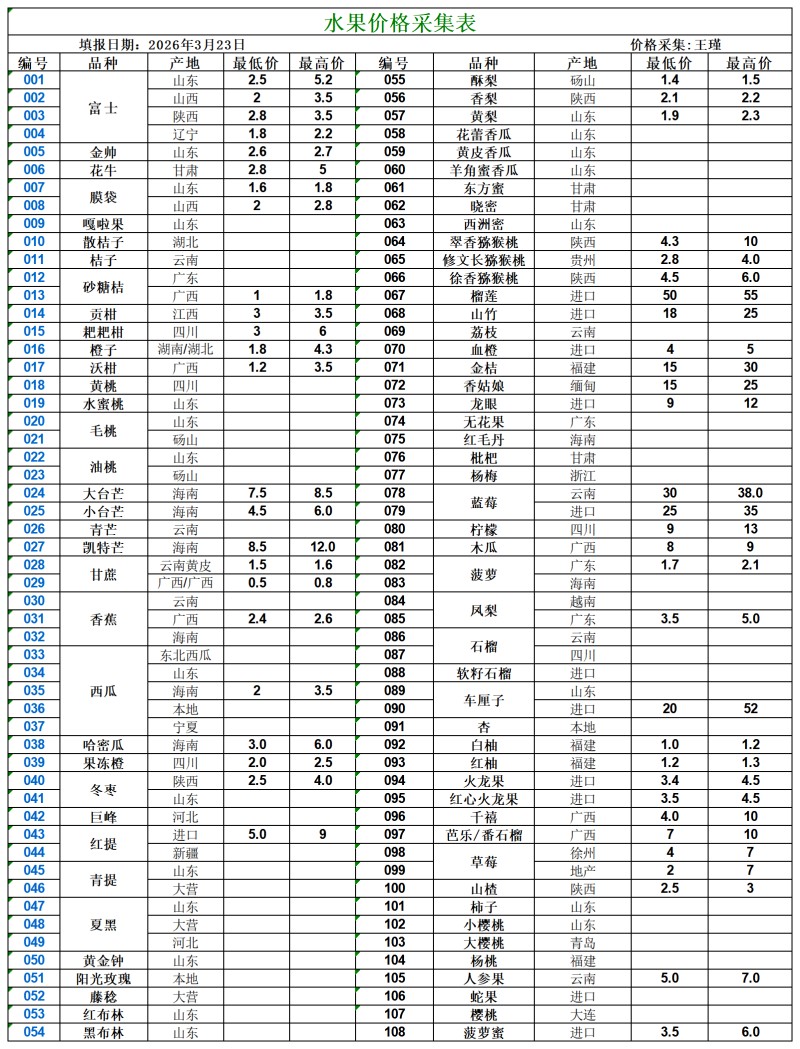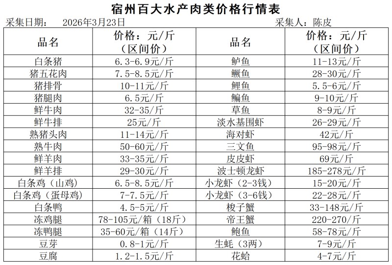 宿州百大2026-03-23价格行情