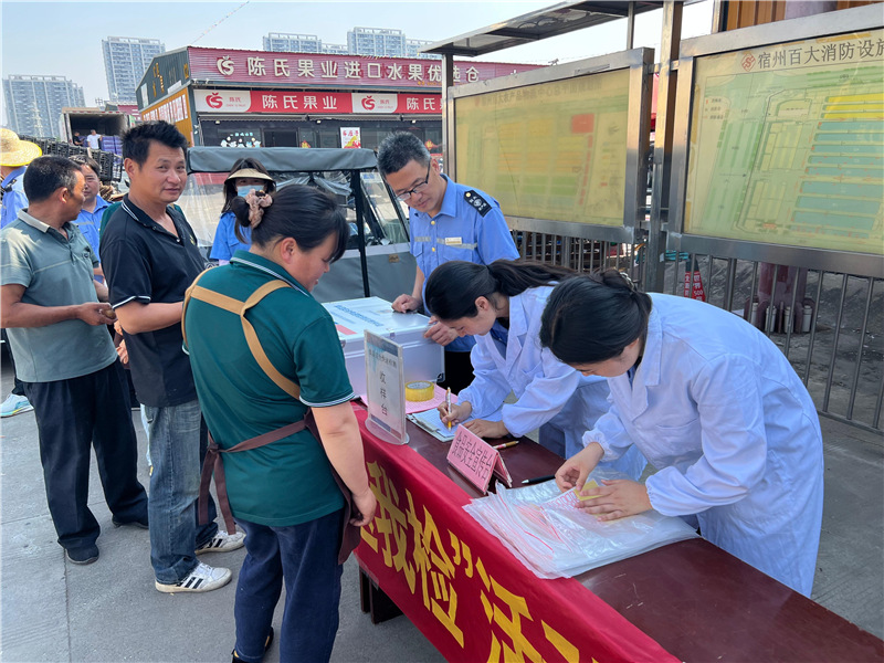 为构建食品安全社会共治格局,增强公众食品安全参与感,5月30日,宿州百大市场食品安全管理部在市场西大门设立检测点,为群众提供免费食品快速检测服务,吸引众多商户、市民踊跃参与。