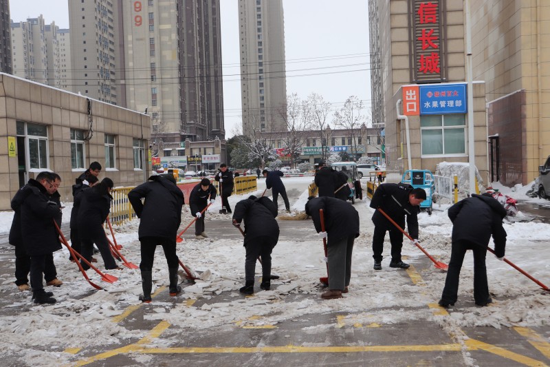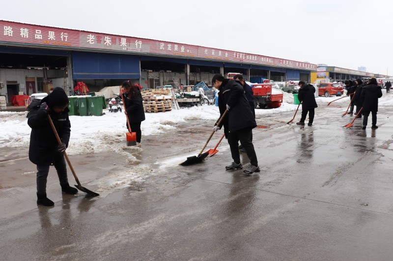 现场,大家不顾严寒,手持铁锹、扫帚主动加入除雪队伍。几十人的身影在银装素裹的世界里忙碌穿梭,呼出的热气在冷空气中凝结成团,每个人的脸上都洋溢着劳动的专注和服务的愉悦,党员干部们用热血实干守护市场群众的出行安全。