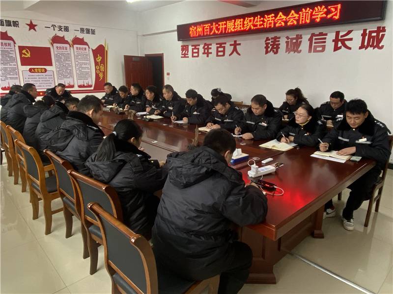 为了巩固党纪学习教育成果,严肃党内政治生活,确保2024年度组织生活会和民主评议党员工作顺利开展,2月28日,宿州百大党支部开展组织生活会会前集中学习,会议由党支部书记王静主持,全体党员参加。